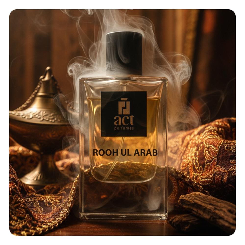 Inspired by Arabian luxury, ACT Rooh Ul Arab is a rich masterpiece of warm spices and aromatic accords, balanced by a velvety base of vanilla and agarwood (oud). Each spray unveils layers of mystery and opulence, perfect for those who desire presence that commands respect.